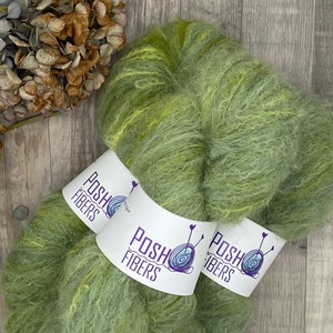 Alpaca yarn is so lovely to work with. Whether you knit or crochet, you will love working with this yarn and wearing your finished object. If you are very generous, you might create a lovely gift for someone else with this lovely Suri alpaca yarn. This hand-dyed yarn is a warm loden green.